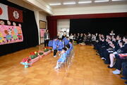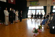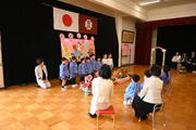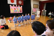 一緒にいこうね。お椅子はこっち!本当に頼りになるうめ組さん。うめ組さんがお祝いの言葉と歌をプレゼントしてくれました。今度は、ばら組さんがおうちの方のほうをむいて♪ちゅうりっぷ 心あたたまる日でした。明日からも楽しみですね。